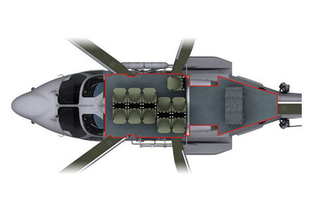 Designed with inherent multi-role capability and flexibility of operation, the AW139 is capable of carrying up to 15 passengers at very high speed, in the most spacious and comfortable cabin in its category. The ample baggage compartment is accessible both from the cabin and externally.