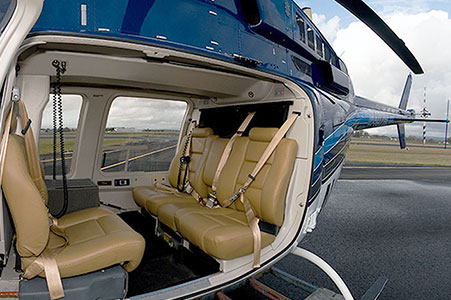 The Bell 407 is the fastest helicopter in the light category. This six seat single engine turbine helicopter with exceptional performance, speed and handling make it an ideal choice for corporate travel. The Four-bladed, all-composite rotor system of 407 makes the journey into a smooth ride. The large cabin are great for executive charter and its powerful turbine is excellent for external load operations.