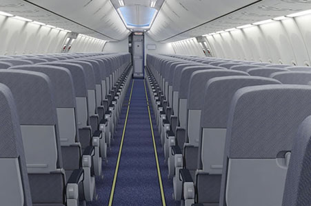 The Boeing 737 is a narrow body jet airliner with short to medium range, single aisle configuration. Cabin space is designed to be both durable and flexible. Optional, convertible seats make it possible to quickly change the passenger cabin to accommodate a variety of airline seat configuration requirements. Best known for its reliability, fuel efficiency and economical performance, typically carries 146 passengers in a two-class arrangement and as many as 188 in a single-class setting.