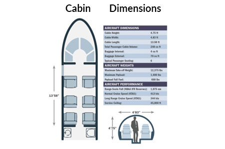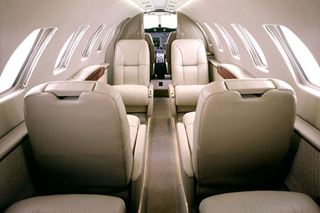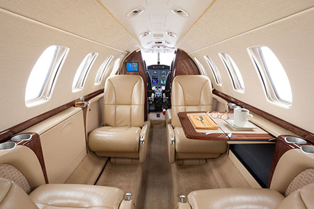 The CJ2 is an excellent choice for flight time 3hrs with six passengers. This Light Jet is an extremely popular choice due to its balance of efficiency and performance. Â The jet is outfitted with a twin Williams FJ44-3a-24 power plant that gives the Citation CJ2 the added boost it needs to climb up to 41,000 feet . There is also ample space for a lavatory and a small galley . It features a lowered center aisle for increased cabin height, giving it a total of 4.7 feet of clearance.
