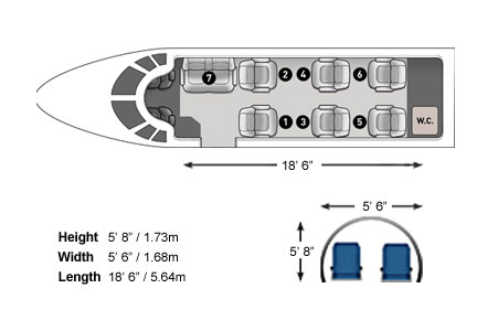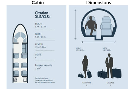 The Cessna XLS features an extremely spacious cabin with surplus baggage provision, easily caters for up to 9 passengers. The 5.7 feet high interior of the XLS outperforms competing private jets largely due to  its two Pratt & Whitney PW545B engines. The XLS also travels at high speed and is certified to land on shorter airfields, inaccessible to larger aircraft and often closer to your final destination. With luxurious stand-up cabin, upgraded in-flight entertainment technology and flight range up to 4 hours, the Citation Excel/XLS performance and reliability matches Cessna’s high standards in private jet travel.